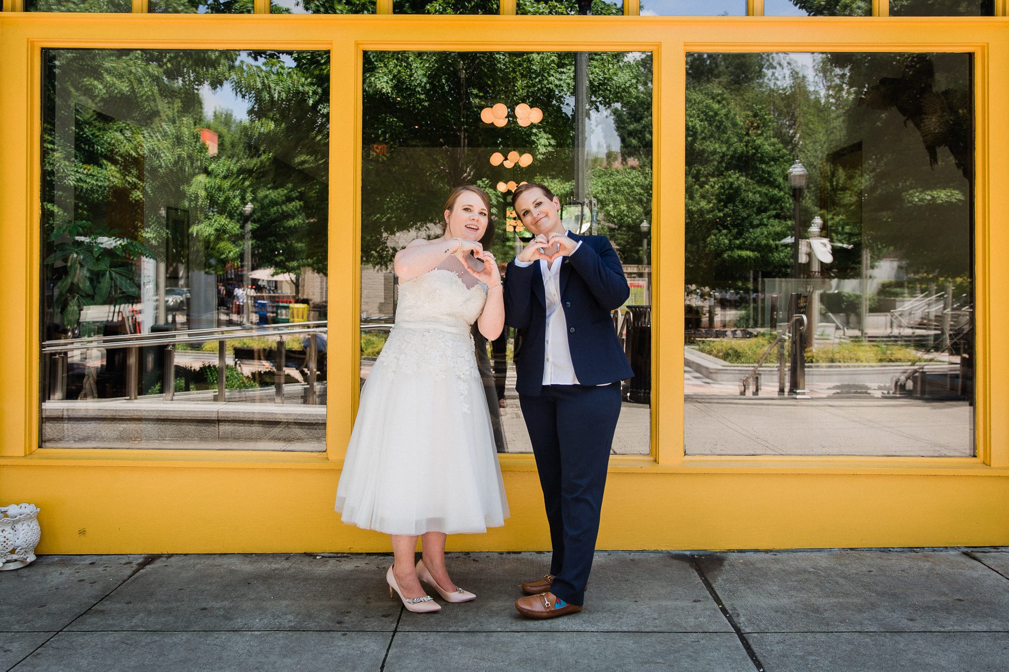 Today I want to tell you the wedding story of one of my favorite couples of all time, Beka and Kacey. They were married last month on a rainy summer morning at the First Baptist Church of Decatur. Beka and Kacey have been together ten years now. They met in nursing school and dated for a couple of years. Then Beka was ordered to deploy to Iraq, and that’s when she contacted me. She asked me to photograph her surprise proposal to Kacey at Piedmont Park. That was in 2011. I’ve been a huge fan of them ever since, stalking them on social media and hearting all the photos they post of their travel adventures and their dog, and fangirling over Beka’s selfie game. A lot has happened in the eight years since that day in the park when Kacey said yes. Our world has changed in a lot of positive ways. We’ve gone from living in a world where they had to ask me not to post any photos of Beka in uniform, to a world where they could be legally married in a church. Together they have conquered a lot of school, moving a half dozen times, job changes, house buying, dog adoption, cat adoption, and all the rest of the daily things that come along with being in a relationship. They’ve done it all with humor and love, and they have gotten stronger together each passing year. It was the greatest honor to be asked to come back and tell this chapter of their story together. Beka and Kacey, thank you for trusting me all those years ago, and then again with your wedding. I will always be your biggest fan. Congratulations!