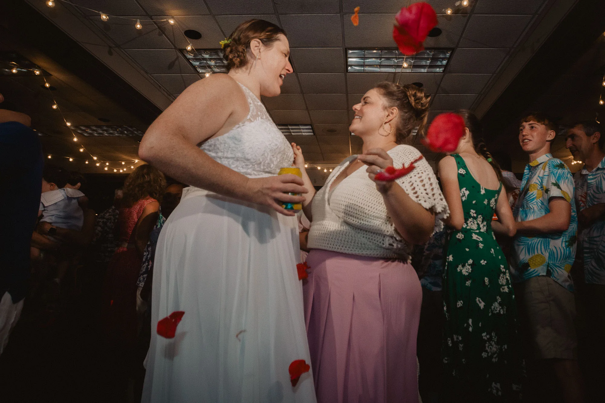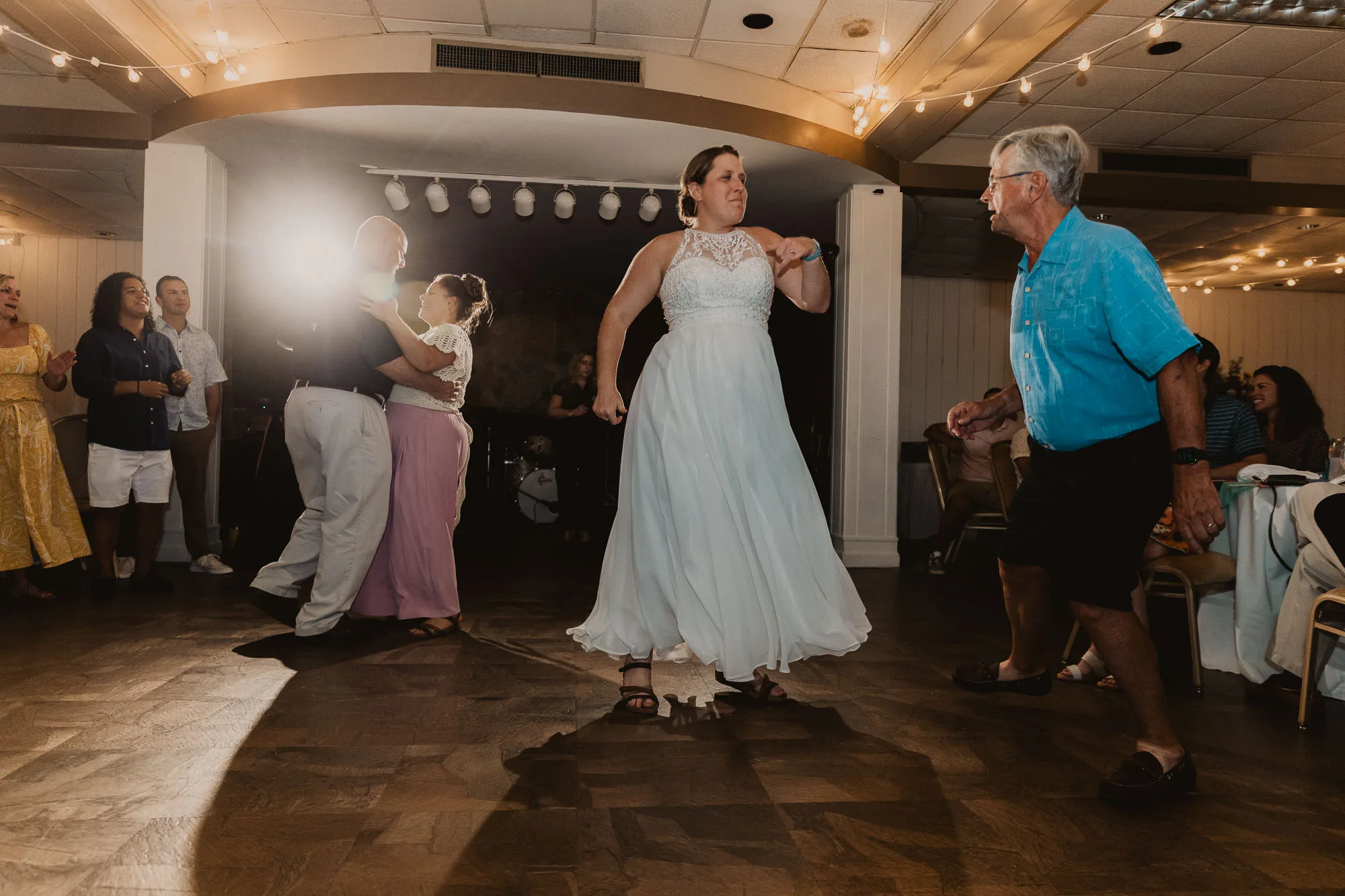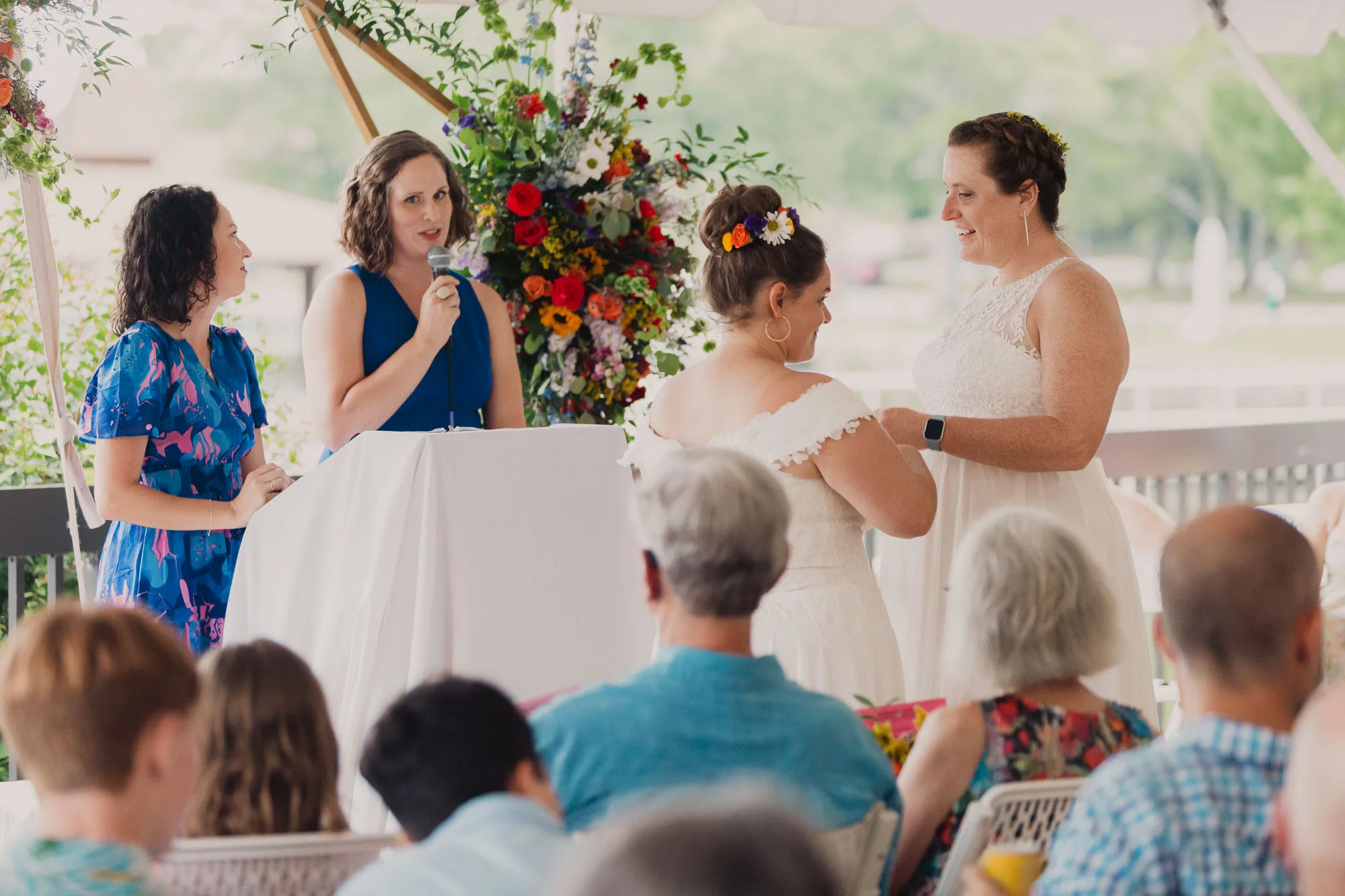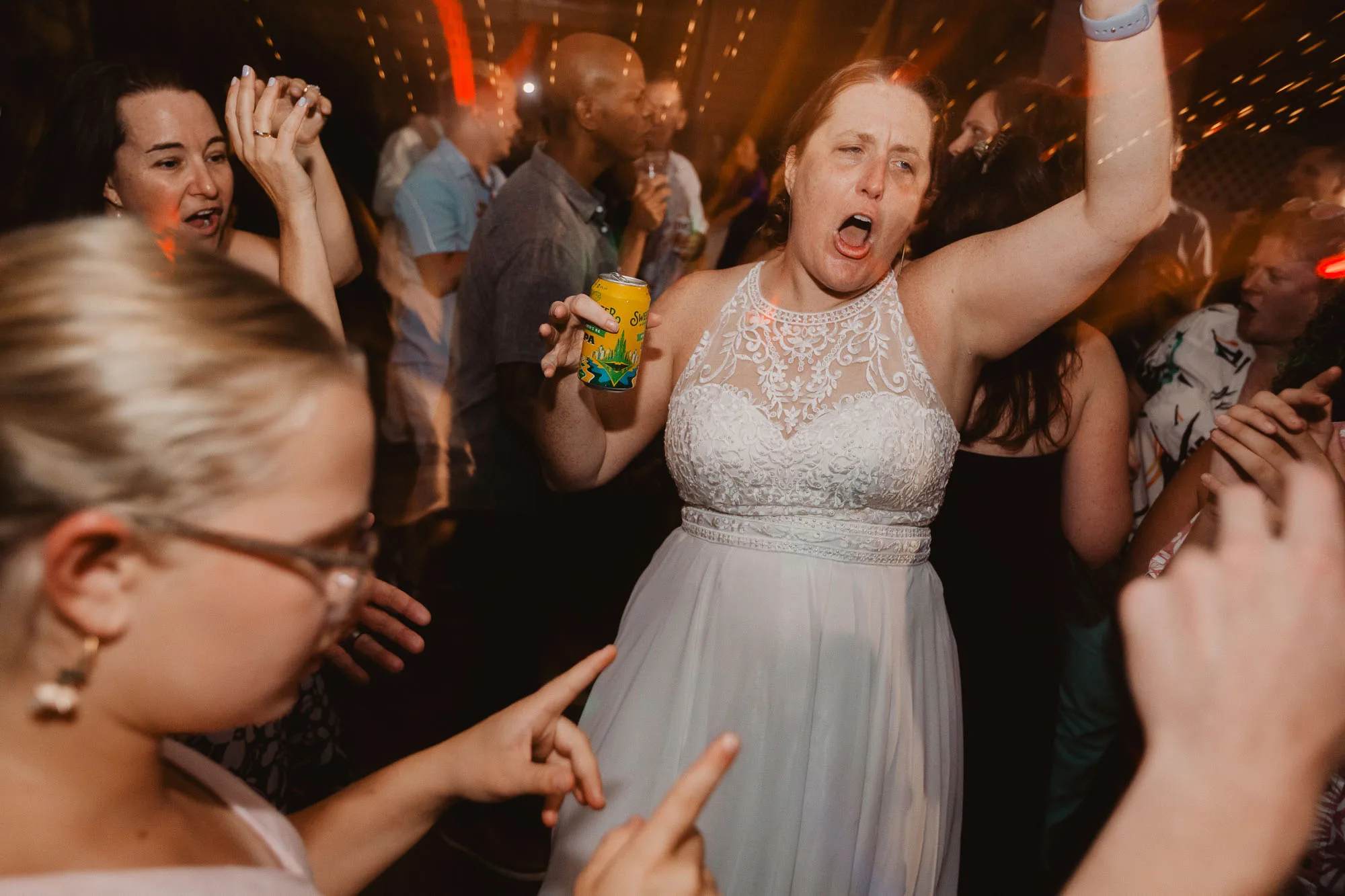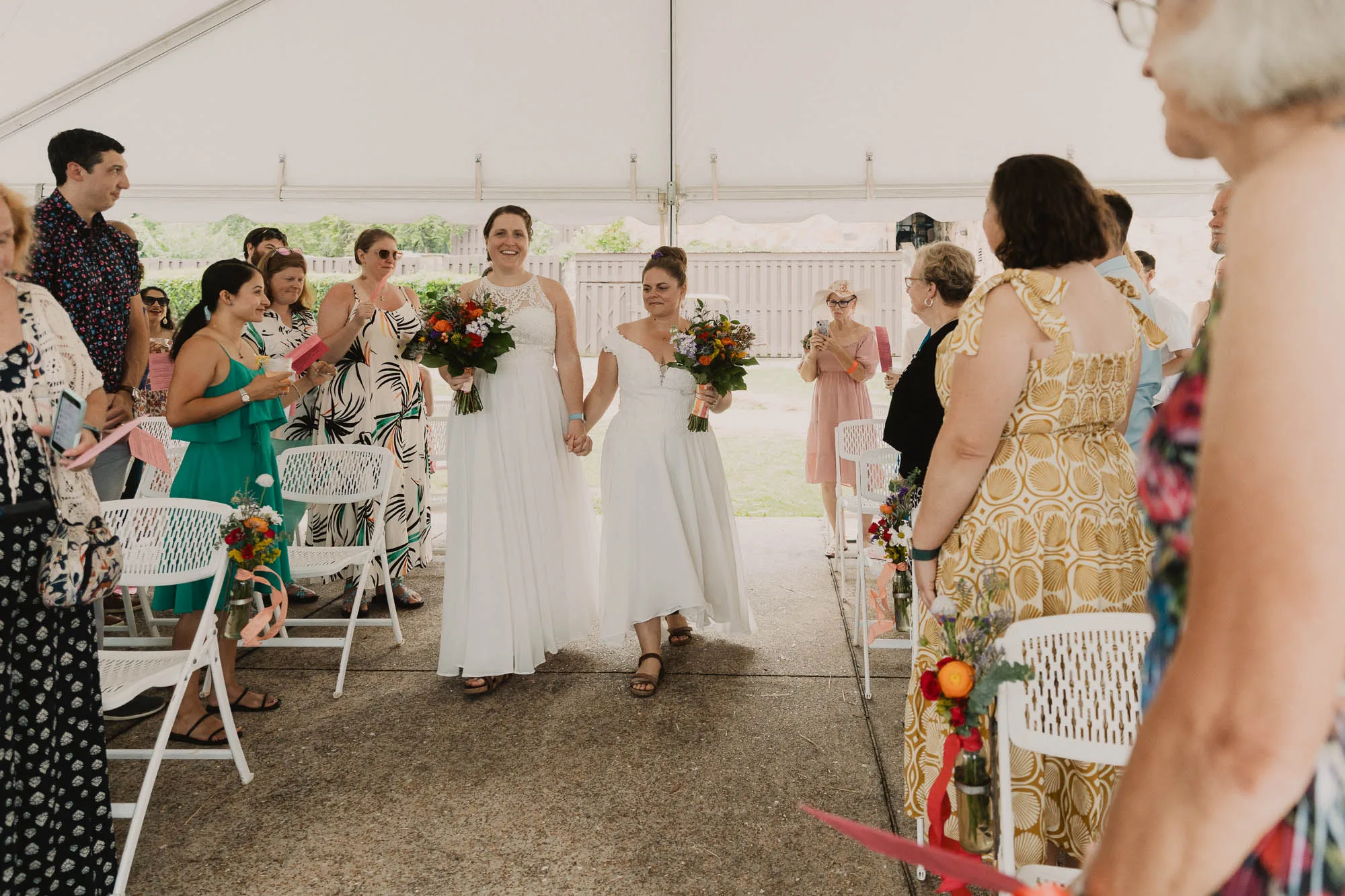 Because they were having a summer wedding outdoors in the south, they generously encouraged their guests to dress comfortably and casually, which is why everyone you see is smiling and relaxed. Their best friends officiated, and it was the sweetest ceremony. They also wanted to have the best dance party ever, so they hired Emerald Empire Band, and that was the correct decision. An epic dance party was had.